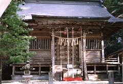往昔、宮下宅と呼ぶ地の後山に在り拆石神社鎮守明神といった。平城帝大同2年6月14日比神後山の社地を去り飛揚倐忽其の有る所の巨石を裂きてこれを中分し石中に寓す。石形並立して屏風のようであった。かく石巌を折いて入り給ひしを以て郷人これより破山明神といった。又平城帝の御宇、坂上田村将軍俊仁公東夷征伐の砌り、この神を勧請し武運長久を祈願したともいい、又古老日う。日本武尊東征の折、磐坂皇子を祀ったとも伝えている。村名元磐坂(後、破坂、葉坂)と称したともこれによるという。明治の初め現社号に改められ、同6年6月村社格加列、大正3年12月供進指定神社となる。